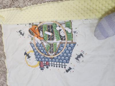 I have completed a cross stitch lap blanket. Now, do I finish it with hand quilting straight stitch right through the cross stitching?