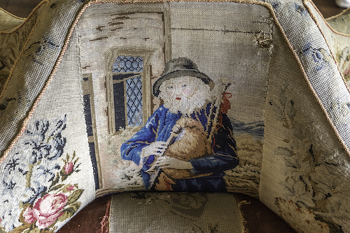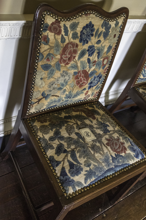 The Needlework Room also contained 6 chairs needlepointed in the same design although there is no proof of who made them.