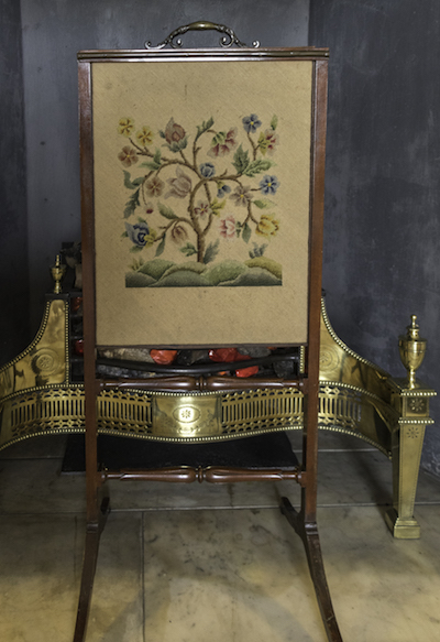 There were several fire screens on display in the rooms downstairs. Although the fire screen in the photo above looks like crewel embroidery, the stitcher used tent stitch throughout.