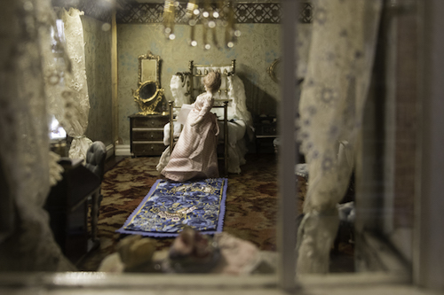 I couldn't resist peeping in the windows and wanted to share this photograph of one of the bedrooms. Check out that beautiful miniature needlepoint rug!