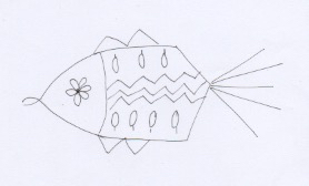 Fig 3 - Twisted chain stitchContinue in the same manner around the outline of the fish's body and head. When you reach his mouth, fasten off by taking the needle down outside the loop. Then start again for the bottom lip. This is to give him an open mouth.