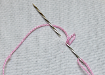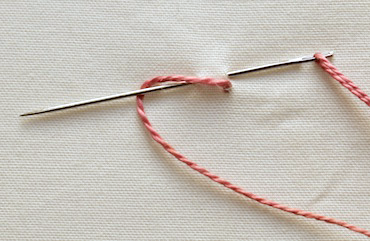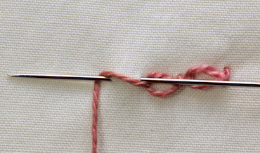 Take your working thread across the needle, and under the tip, to create the twist. Then pull it through.