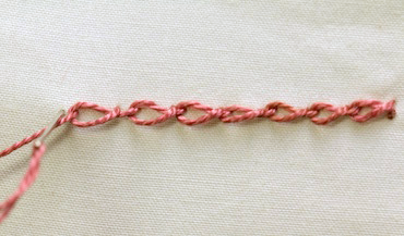 Fig 4 - Twisted chain stitchHere is my finished row of twisted chain stitch in the sample thread.