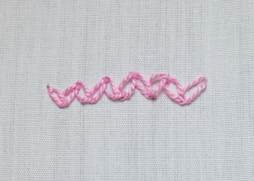 Fig 2 - zigzag chainThe trick to zigzag chain stitch is to pierce the thread of one stitch when doing the next. This keeps the angles of the stitches correct and in place.