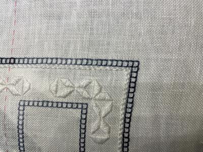 Hi can you please show me how to turn a corner using double or alternating stem stitch. It is inside the four-sided stitch border.
