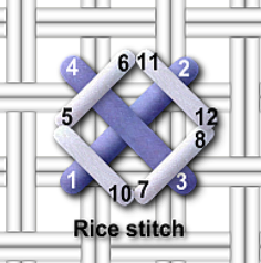 Rice stitch is a very useful needlepoint stitch to learn, as it can be used in so many different ways. It is simple to work, on either canvas or cross stitch fabrics.