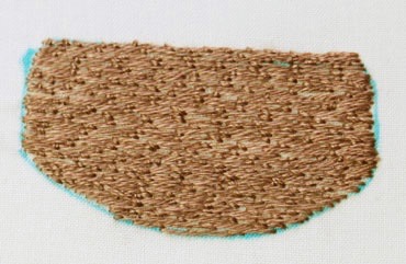 Fig 8 - The velvet stitch grassStitch the third basket shape, using 2 strands of brown thread, in Bokhara couching. Try to stagger the couching stitches to create a basketweave effect.