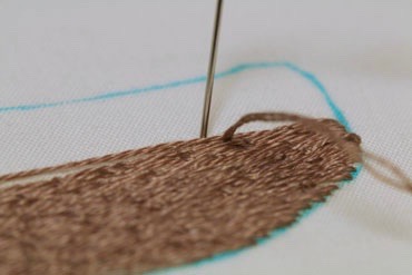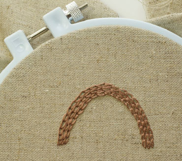 Using two strands of brown floss, embroider the handle in three close rows of chain stitch..