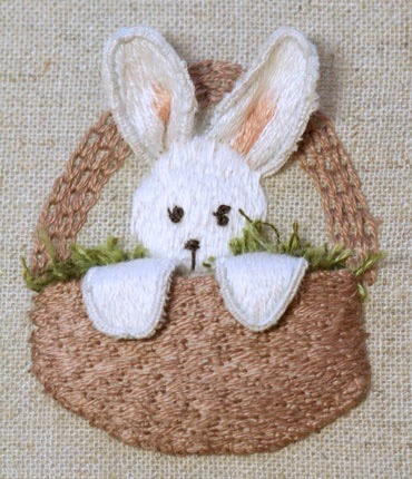 Ready to try stumpwork for yourself? I designed this little Easter bunny in a basket to guide you through some of the basic techniques. He is the ideal size to mount in an aperture card or you could frame him when he is finished.