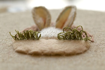 Fig 3 - Padding the basket and bunny's head with feltTrace the ears and largest basket shape onto your muslin or calico.